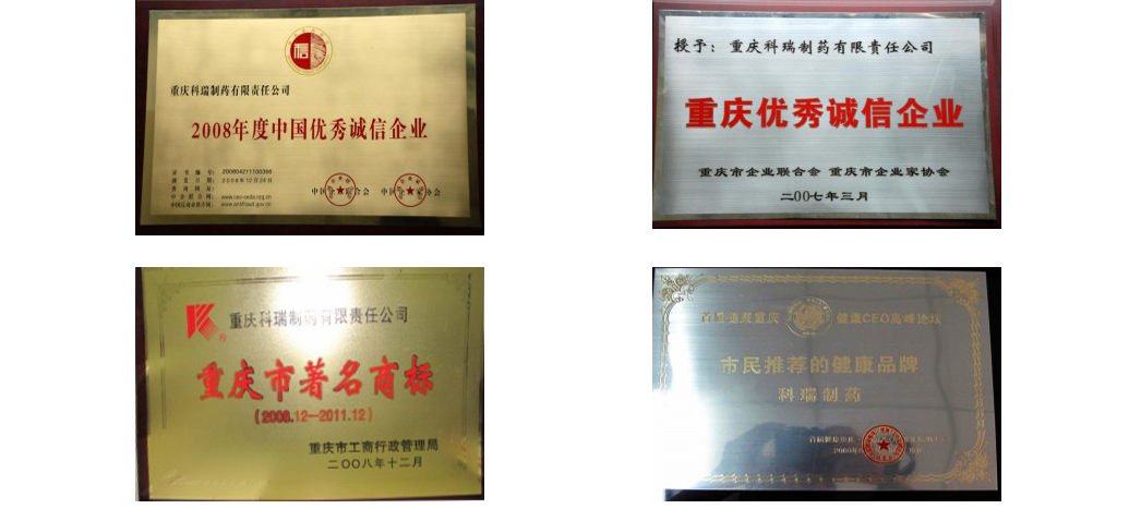 企业荣获“中国优秀诚信企业”、“重庆优秀诚信企业荣誉”。