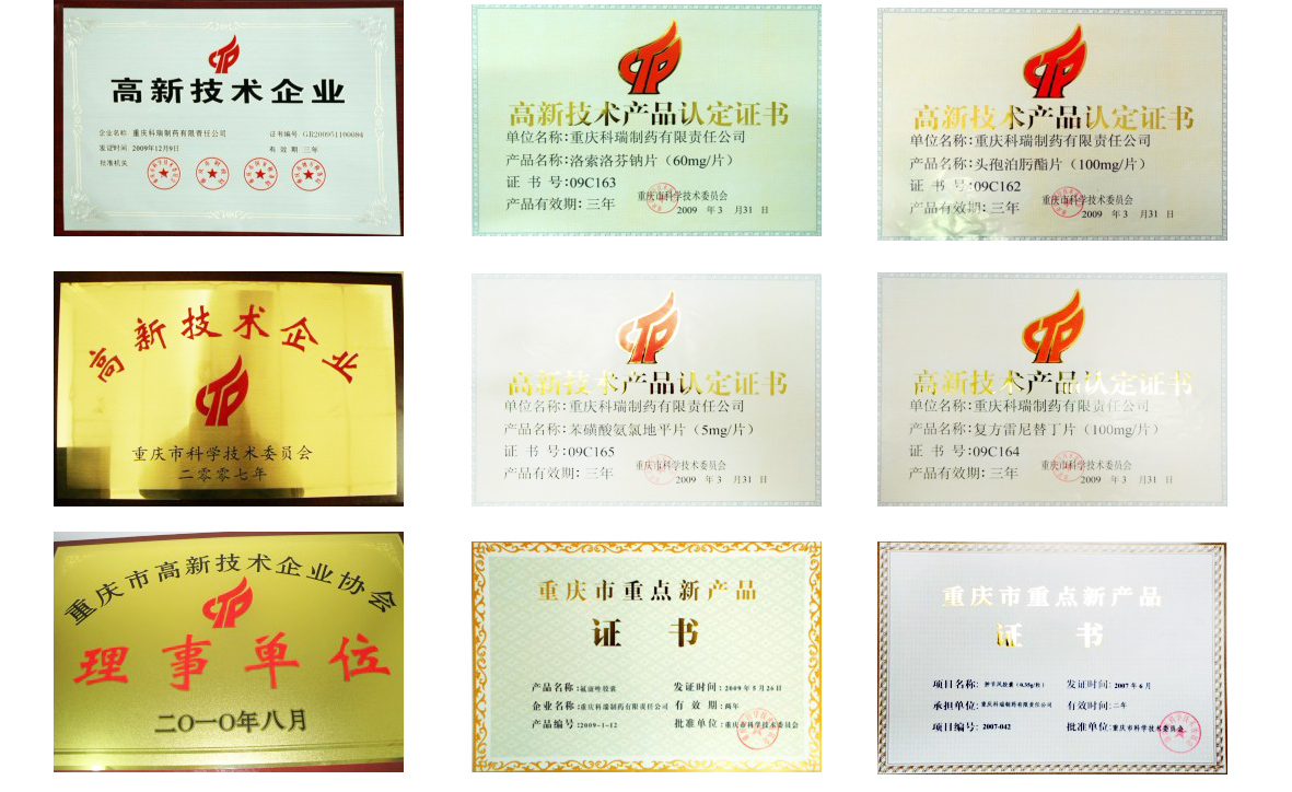 多个产品荣获“重庆市高新技术产品”及“重庆重点新产品”称号。