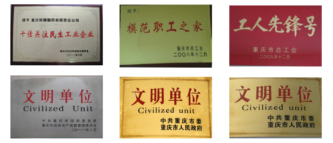曾多次荣获“重庆市十佳关注民生工业企业”、“重庆市职工模范之家”、“重庆市文明单位”等多项荣誉。