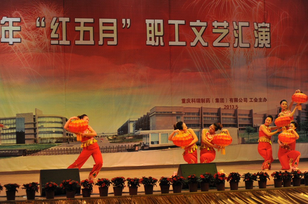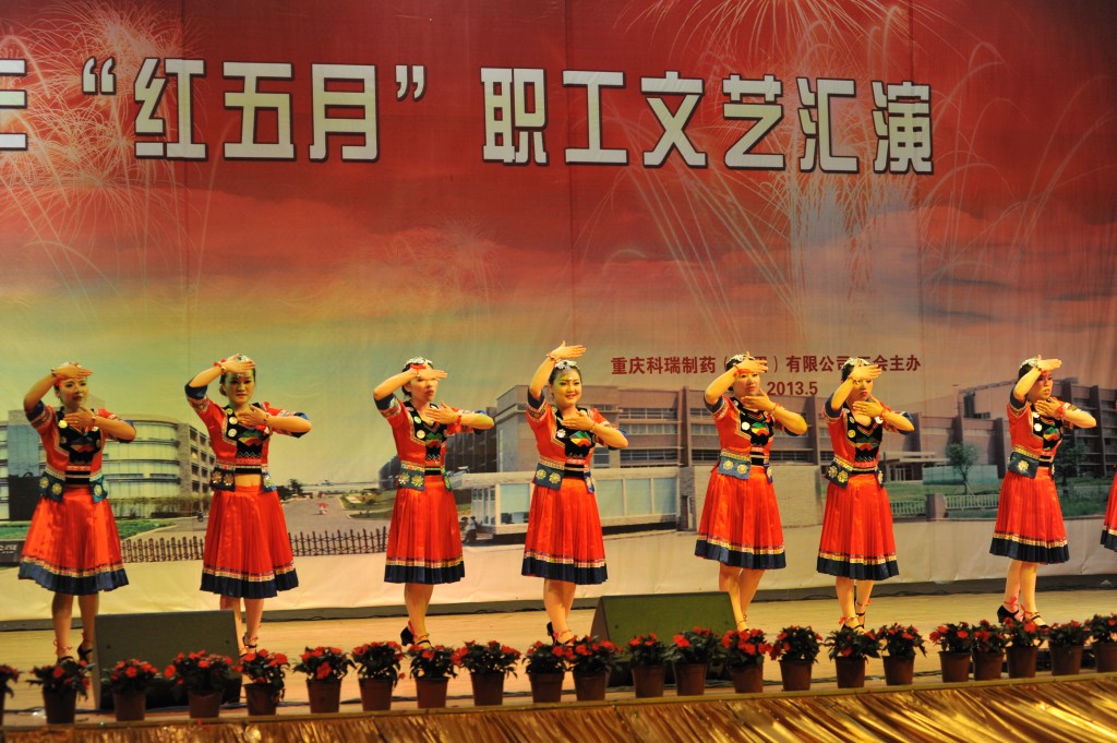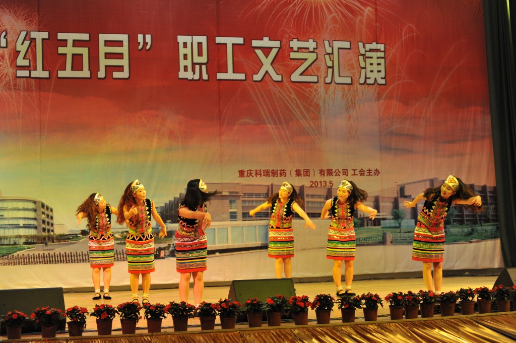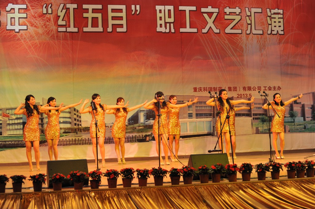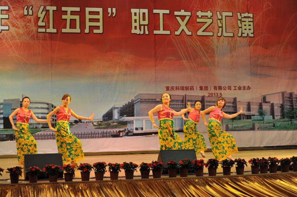 为丰富职工文化生活,展示企业形象,增强企业的向心力和凝聚力,集团公司工会于2013年5月24日下午2点,在重庆交通大学学术交流中心举办了“科瑞制药集团公司红五月职工文艺汇演”。化医农林水利工会主任曾洁、副主任杨靖、办公室主任李燕,重庆医药(集团)股份有限公司工会办公室主任刘晓丹出席并担任评委。科瑞制药集团副总经理黄坚毅,党委副书记、工会主席卢再华,副总经理刘睿斌,总经理助理江其林,芶杰等领导出席了本次活动。由集团各单位带来的舞蹈、小品、歌曲演唱、器乐演奏等各类精彩纷呈的节目给观众带来了欢笑,大家齐聚一堂,共同祝愿科瑞制药集团越来越好!以下是精彩图片赏析。