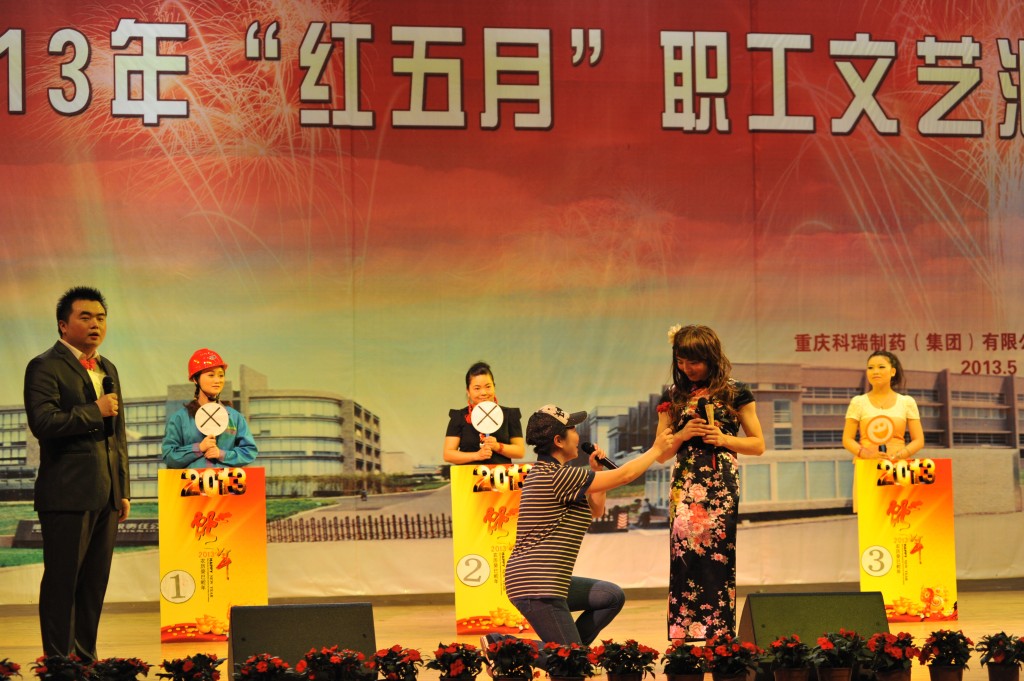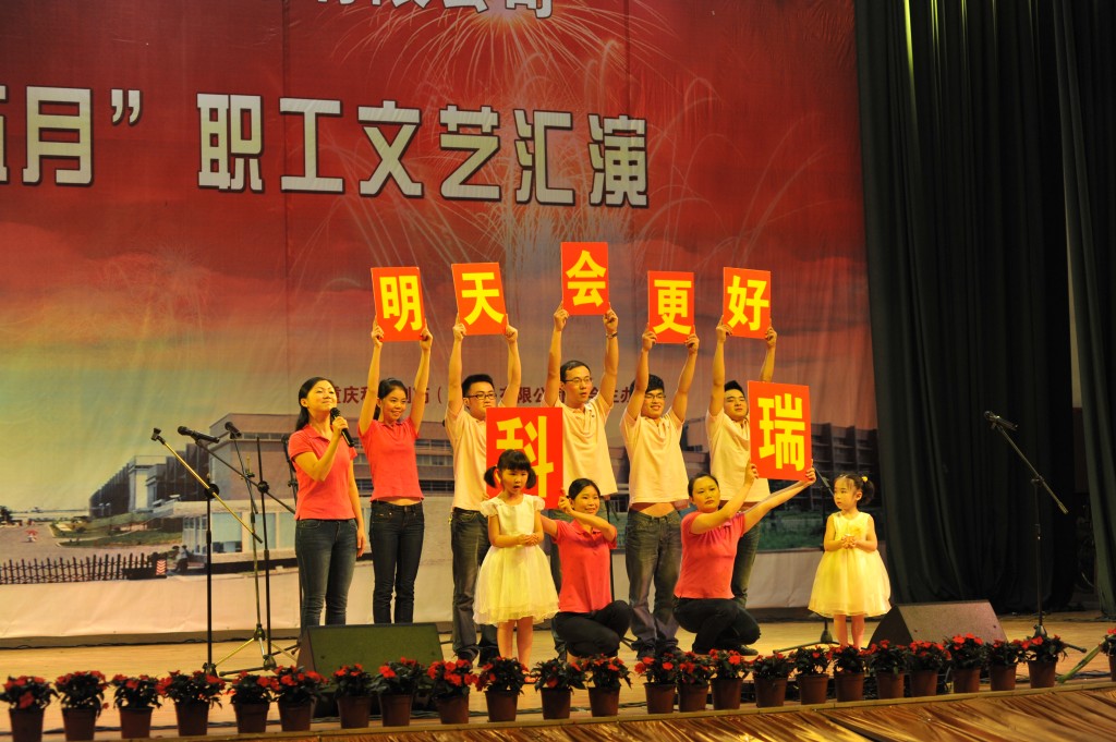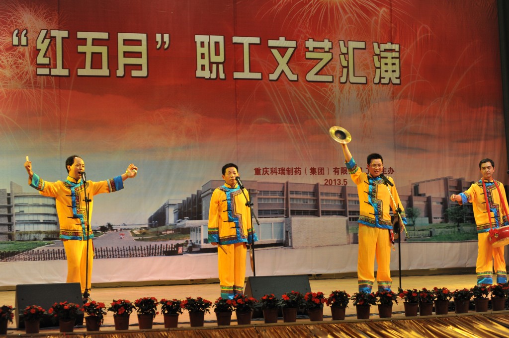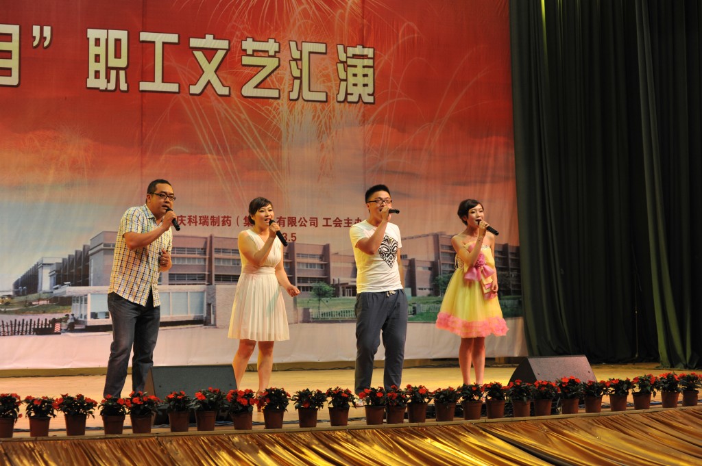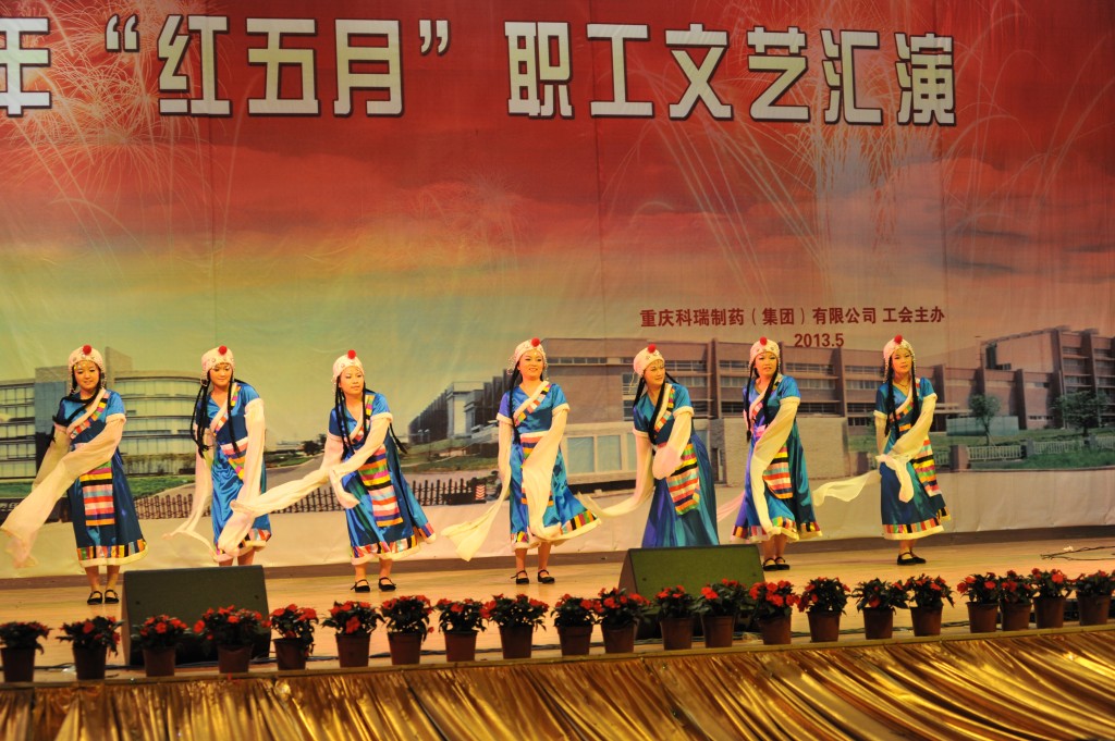 为丰富职工文化生活,展示企业形象,增强企业的向心力和凝聚力,集团公司工会于2013年5月24日下午2点,在重庆交通大学学术交流中心举办了“科瑞制药集团公司红五月职工文艺汇演”。化医农林水利工会主任曾洁、副主任杨靖、办公室主任李燕,重庆医药(集团)股份有限公司工会办公室主任刘晓丹出席并担任评委。科瑞制药集团副总经理黄坚毅,党委副书记、工会主席卢再华,副总经理刘睿斌,总经理助理江其林,芶杰等领导出席了本次活动。由集团各单位带来的舞蹈、小品、歌曲演唱、器乐演奏等各类精彩纷呈的节目给观众带来了欢笑,大家齐聚一堂,共同祝愿科瑞制药集团越来越好!以下是精彩图片赏析。