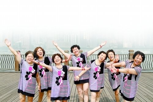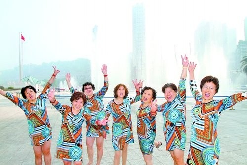昨日,又到了聚会的日子,7个姊妹伙穿着同样的衣服来到南滨路烟雨公园。重庆晨报记者 王海 摄