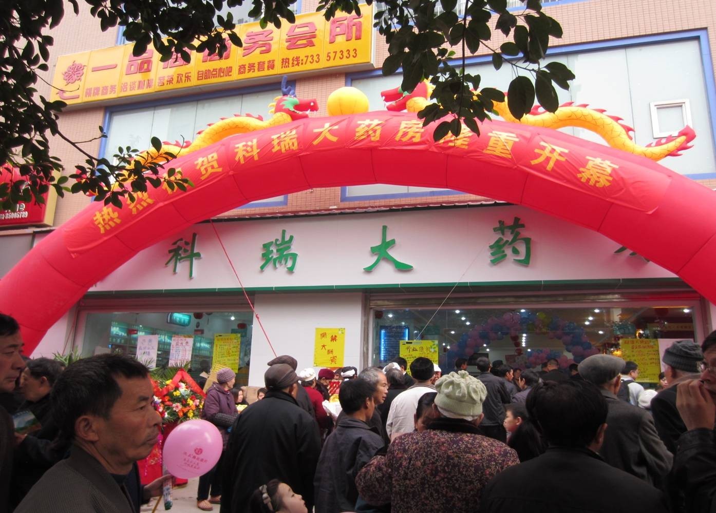 11月26日上午,石柱县城佳博雅苑一楼锣鼓喧天,彩旗飘扬,科瑞集团首家以"科瑞大药房"命名的"科瑞大药房-鸿宇旗舰店"正式开门营业,集团公司商管委、营销中心市场部领导亲临现场祝贺。