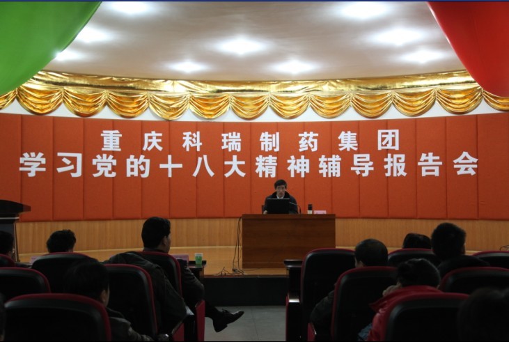 为深入学习宣传贯彻党的十八大精神,进一步将十八大精神运用到企业的各项工作中,科瑞制药集团于2012年12月26日上午在二楼多功能厅组织召开了学习党的十八大精神辅导报告会。公司在家的领导班子成员、班组长以上管理人员、全体党员、入党积极分子以及各子公司领导班子成员、支部书记、党群部门负责人共170余人参会。报告会由公司党委副书记卢再华主持。