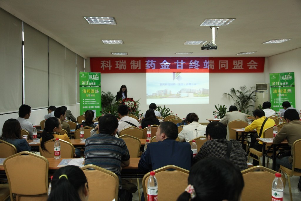 2013年10月15日,经过精心筹备的首届科瑞金甘终端同盟会在科瑞制药集团本部召开。来自重庆主城的六十余家VIP终端客户以及万和、科渝、联诚等连锁公司的掌门人应邀参加了会议。科瑞制药集团董事长申文求、总经理邹世红、营销总监唐世发等出席了会议。