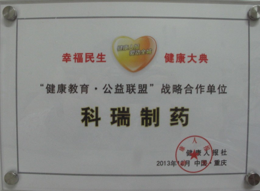 科瑞制药荣获“健康教育 公益联盟”战略合作单位
