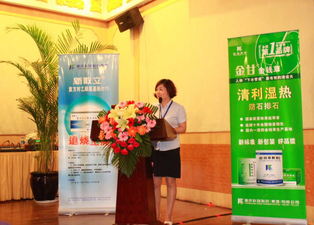 “在金甘金钱草实施渠道控销营销模式不变的情况下,实现产品“立体营销”的思路,真正打通产品的通路建设,落实终端的下沉才是我们最核心环节。今天就“围绕工商如何联合开展面向终端的策略”进行剖析……”市场部的余红助理做了“精诚合作,再创辉煌”的主题分享,同时对最新医药形式进行了分析,并解读了低价药物目录给大家带来的新的机遇与挑战。
