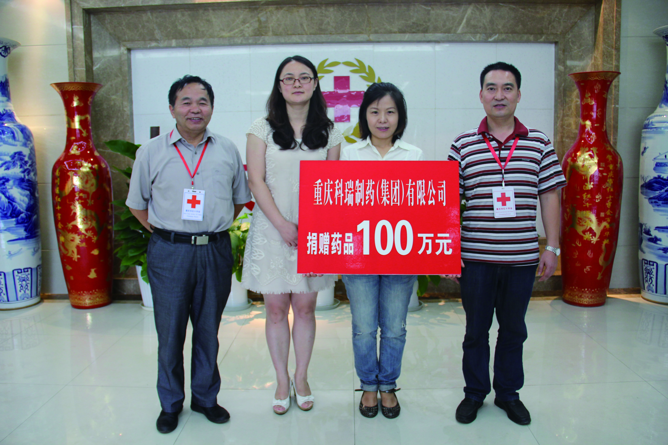 百年企业科瑞制药长期以来始终以“胸怀天下、药济苍生”为理念,坚持“诚信共赢、服务社会”的办企宗旨,努力弘扬“人道、博爱、奉献”的红十字精神,积极参与、支持公益事业活动,尽最大努力积极做出贡献。2014年9月在集团公司领导的决议下,科瑞制药继续履行公司公益事业活动,通过市红十字基金会向大重庆贫困区捐赠近百万元药品。