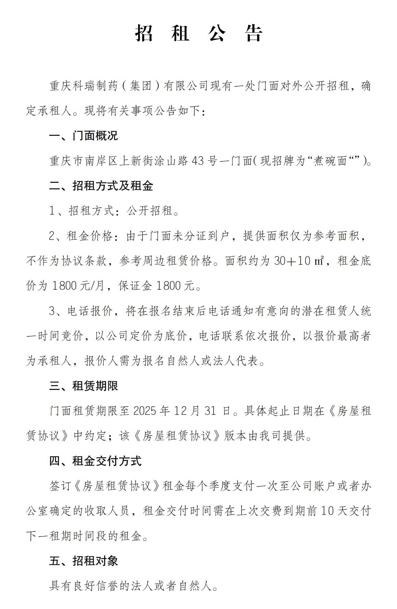 招租公告