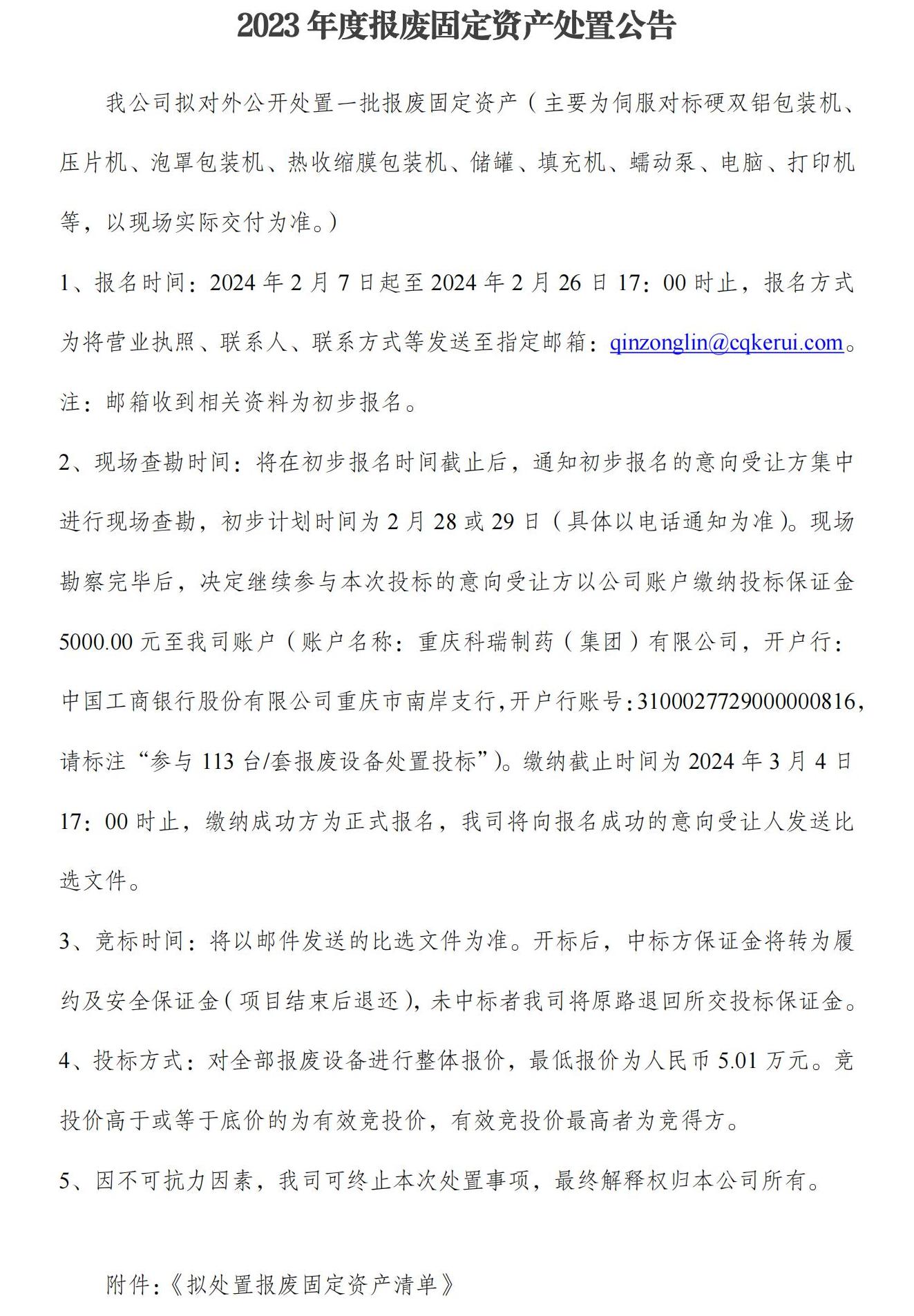 2023年度报废固定资产处置公告