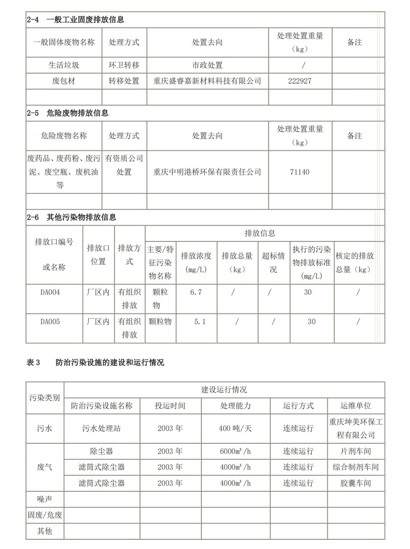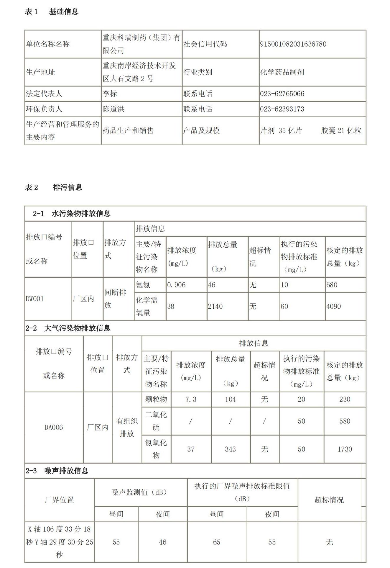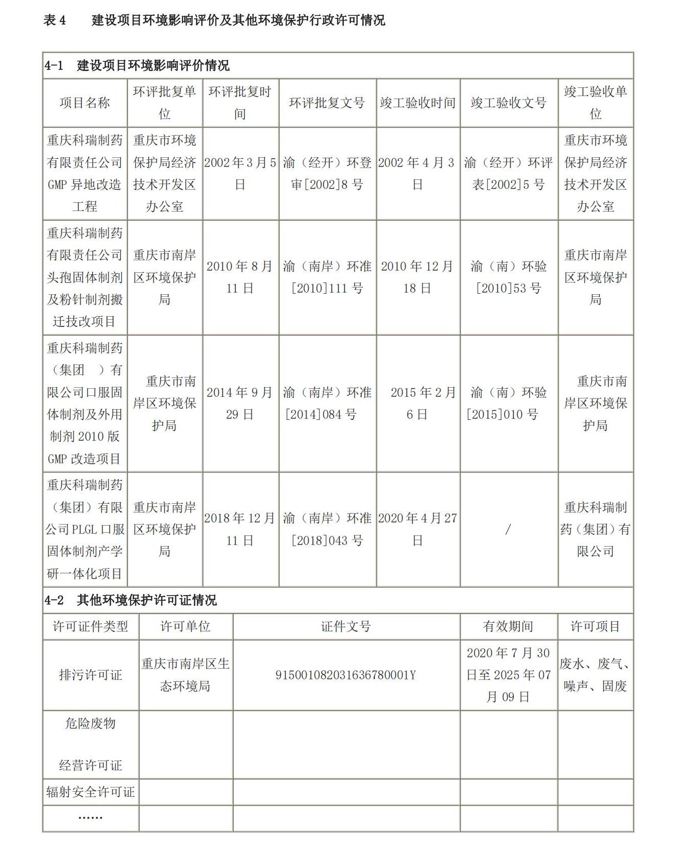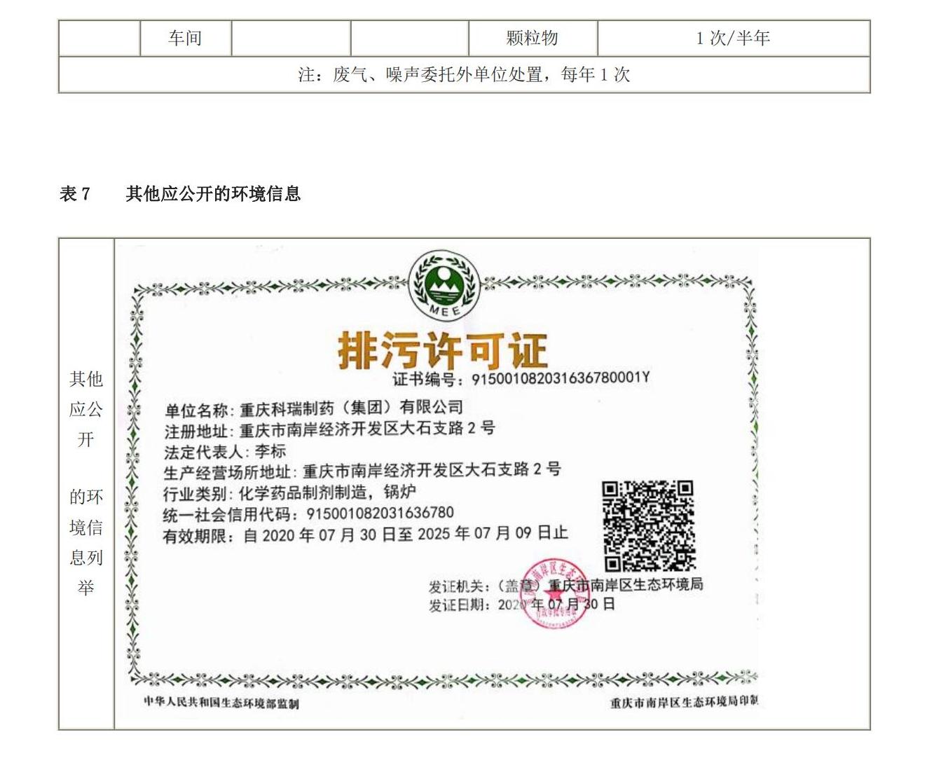 重庆科瑞制药(集团)有限公司企业环境信息公开