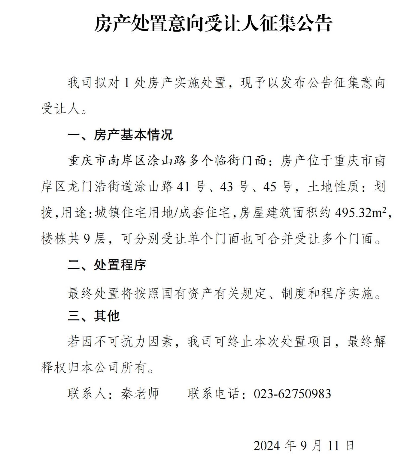 房产处置意向受让人征集公告